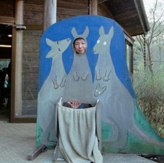 コアラの親子に続いてこんどはカンガルーの親子の顔出し看板を発見!