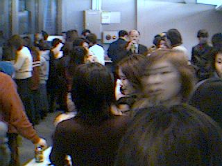 ここは銀座のヤマハホールである。開場は6時半で、上映は7時から。開場後自分たちの席を確保したら、狭いロビーにOLさんたちが殺到。皆、近所のコンビニやファーストフードでの食事を摂っている。