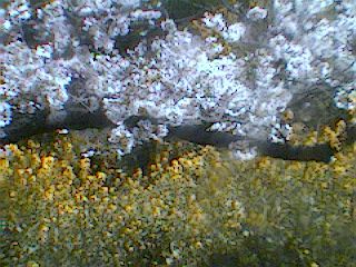 下の写真はお堀の菜の花と桜。でもロカティオの27万画素デジカメではなんだか判らないなぁ。嗚呼、単体のデジカメが欲しいな。