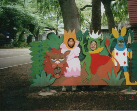 | 小倉太郎と小倉花子 | 小倉城 | 小倉城城内の色々なことが体験できるコーナーにありました。ここには他に ・領主小笠原氏の殿様衣装の顔出し ・お姫様 ・火消し ・町娘 が有りました。しかもそれぞれ両面使える看板が2つずつ。この名前はそこに書いてあったものです。 2002.11.20頃確認(2003.1.3・アローラさん情報) |