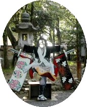 | 祭のメンバー1・祭りのメンバー2 | 島田市大井神社 | 先頃 帰省の折に発見 静岡県島田市の大井神社境内で ここのお祭「帯祭」に関係したものでしょう。(2003.7.6・masakoさん情報) |