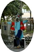 | カニ | 「ズームイン朝!」の中継で登場!残念、所在地をメモしそこなった。カニ料理のお店のカニ神社の前にある顔出し看板で、神社の為にあるそうですが・・・、。(2001.3.28・館長) |